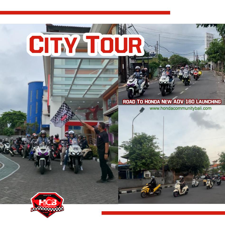 City touring di mulai dari Astra Motor kemudian dilanjutkan melalui rute dalam kota yakni, Jl, Cokro, Gajah Mada, Veteran, Patimura, Seroja dan Gatot Suboto yang tentunya melewati iconic kota Denpasar yaitu Patung Catur Muka