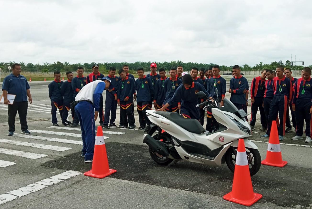 Pekanbaru–  PT Astra Honda Motor (PT AHM) dan PT Capella Dinamik Nusantara (PT CDN) Main Dealer Honda wilayah Riau konsisten melanjutkan campaign #Cari_Aman untuk generasi muda penerus bangsa. Kali ini SMKS Taruna Pekanbaru berkesempatan berkunjung ke Honda Safety Riding Center PT. Capella Dinamik Nusantara untuk langsung berpartisipasi mengikuti training skill dasar berkendara sepeda motor.