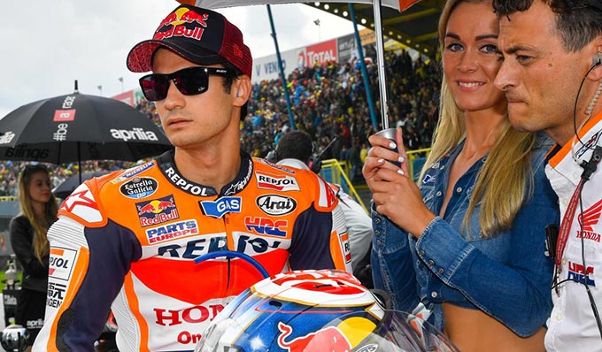 Sebelumnya Pedrosa sempat absen tiga seri setelah mengalami cidera, akibat terpental dari motornya dan mengakibatkan patah tulang selangka kanan di sirkuit Motegi, Jepang dalam sesi latihan.