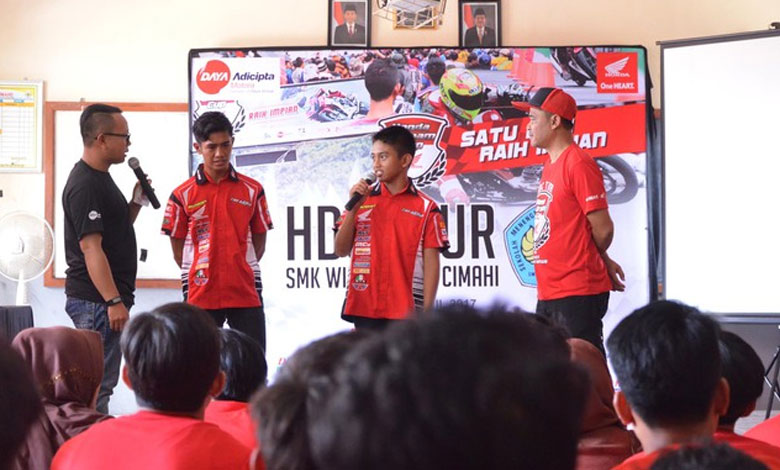Sebanyak 100 siswa SMK Wiraswasta Cimahi mendapatkan pengalaman tentang dunia balap dari pebalap muda binaan DAM yakni Anggi Permana dan Mario S.A yang tergabung di tim Honda Daya Trijaya Racing Team. Selain edukasi balap, para siswa juga mendapatkan pengetahuan tentang HDC, Honda Smart Technology, Product Knowledge, dan Sosialisasi Safety Riding.