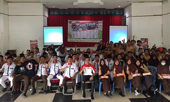 "Kami mengajak 100 siswa MAN 2 Model Banjarmasin untuk mengikuti rangkaian kegiatan positif dari HDC Tour kali ini selama dua hari. Hadirnya Gerry Salim tentu kami harapkan agar seluruh pengalaman balap Gerry bisa tersampaikan dengan baik dan bisa lebih merangsang minat para siswa yang ingin menjadi pebalap profesional lewat jalur yang tepat,” jelas Antonius Silitonga, Direktur Marketing PT Trio Motor.