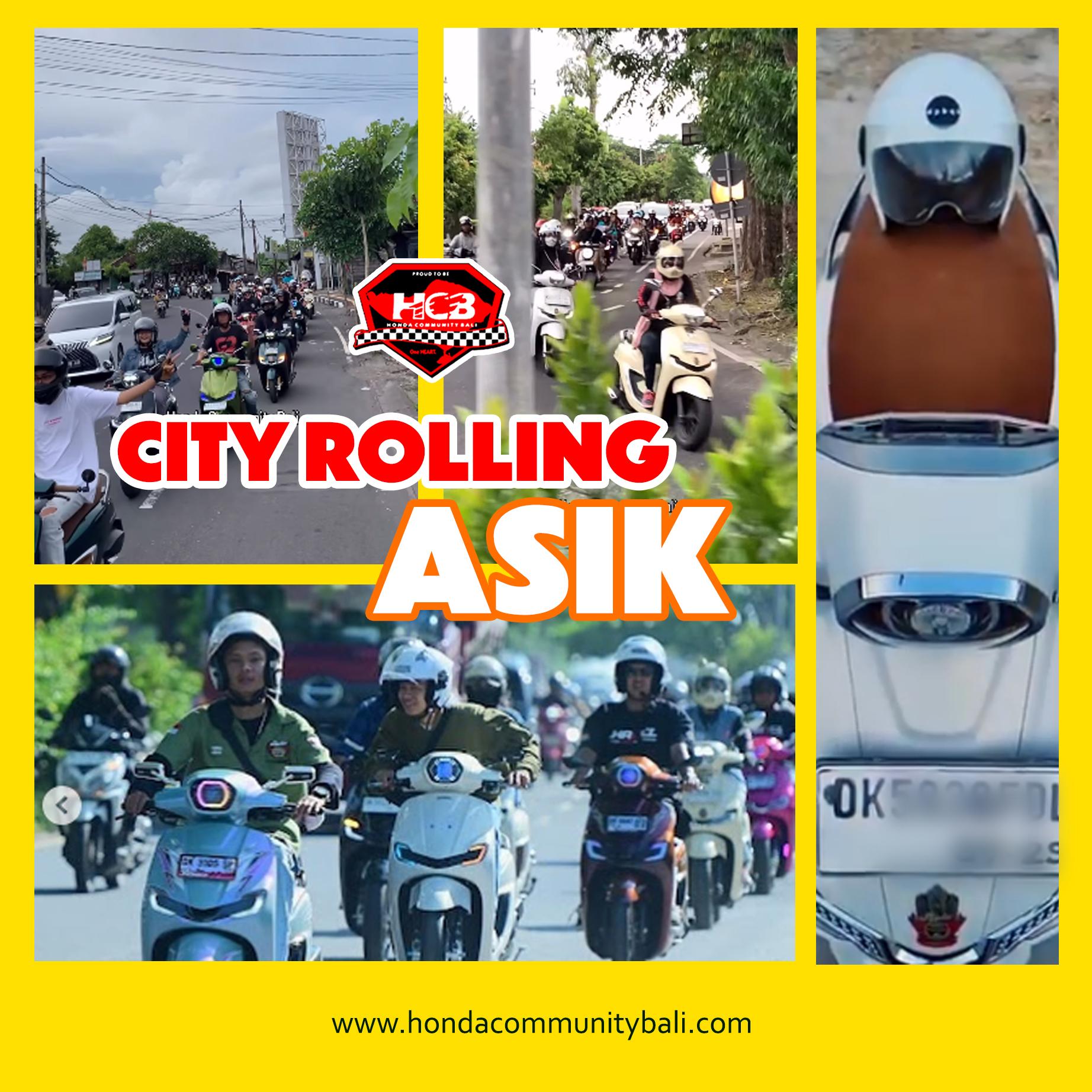City Rolling atau touring santai berkeliling kota dengan motor, sering dilakukan komunitas atau acara promosi untuk menikmati perjalanan, mencoba motor baru, atau kegiatan sosial, dengan fokus pada keselamatan dan ketertiban di jalan raya, tidak seperti balap liar.