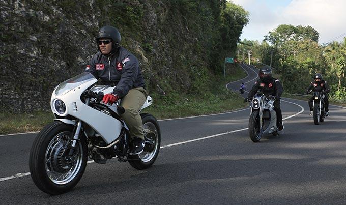 “Saya memilih konsep Café Racer yang berbeda dari yang modikasi-modifikasi yang pernah ada, tentunya dengan mengutamakan unsur safety yang akan nyaman nanti saat dikendarai. Karena desain yang saya tawarkan beda, saya harap ketika masyarakat melihat hasil karya saya nanti dapat terinspirasi untuk berkreasi lebih bagus lagi dari karya saya,” ujar modifikator Yuwono Djati.