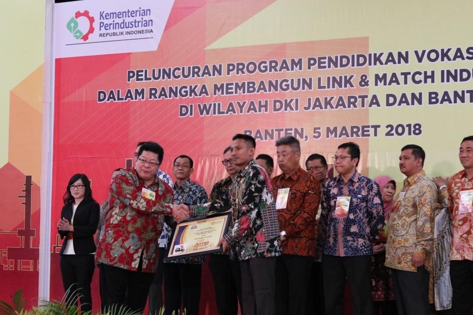 Upaya penguatan pendidikan vokasi oleh Kemenperin dan AHM ini ditandai dengan penyerahan bantuan 11 unit sepeda motor, 11 set Special Tools, dan Materi Ajar dari AHM kepada 11 SMK binaan Honda dalam rangkaian acara Peluncuran Program Vokasi Industri Provinsi DKI Jakarta dan Banten. Penyerahan bantuan secara simbolis disampaikan oleh General Manager Human Resource Division AHM Lucas Prana Sunarja kepada salah satu kepala sekolah SMK tersebut di Cilegon, Banten (5/4). Kemenperin juga akan membantu pengembangan sarana pendukung untuk program vokasi industri ini.