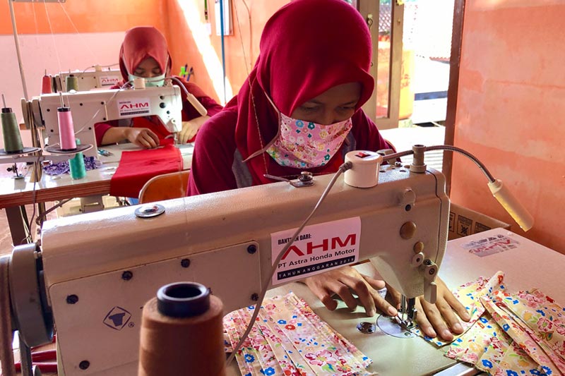 Karawang – Meningkatnya kebutuhan masker di tengah pandemi COVID-19 mendorong mitra binaan PT Astra Honda Motor (AHM) beralih memproduksi masker kain. Kelompok usaha bernama Kalihurip Satu Hati (KSH) ini semula membuat kain lap serba guna untuk memenuhi kebutuhan industri, termasuk AHM.