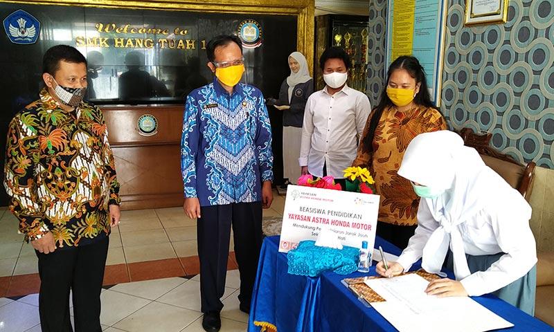 Jakarta – Proses pembelajaran jarak jauh masih terus dijalani oleh pelajar dan para guru selama masa pandemi Covid-19 ini. Untuk membantu menjalaninya, Yayasan Astra Honda Motor (Yayasan AHM) menyalurkan beasiswa senilai Rp 350 juta kepada 203 pelajar sekolah dan 37 guru yang tergabung dalam Sekolah Satu Hati (SSH) dan para pelajar di Kampung Berseri binaan PT Astra Honda Motor (AHM).